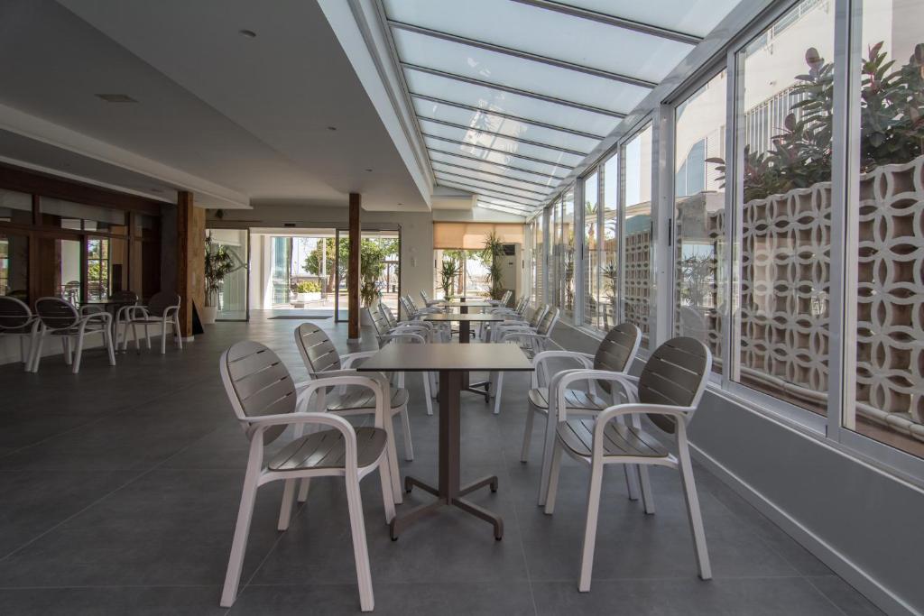El restaurante, con vistas al mar, sirve una variedad de platos de cocina mediterránea e internacional. Además, el hotel cuenta con un bar con salón y televisión, así como acceso gratuito a Wi-Fi.